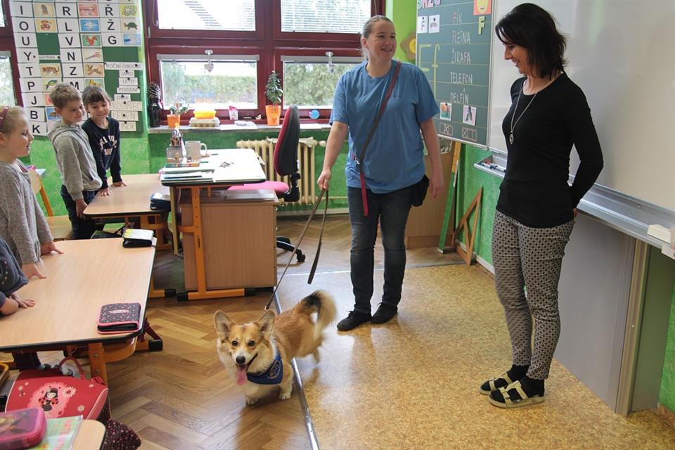 Prvňáci dostali za úkol poskládat z barevných céček vodítka pro pejsky a procvičili si tak čísla od 1 do 10. Ti nejšikovnější se mohli za odměnu s Vilíkem projít po chodbě školy. Následně žáci jmenovali a počítali různé části těla psa, měli příležitost se s Vilíkem pomazlit a odměnit ho za trpělivost správně podaným pamlskem. Ptali se na nejrůznější zajímavosti, například kolik Vilík váží, jak se naučil štěkat na povel, nebo zda jde o křížence nebo čistokrevné plemeno. Všechny dotazy jim zodpověděla paní učitelka Bauerová, která tvoří druhou polovinu certifikovaného canisterapeutického týmu.